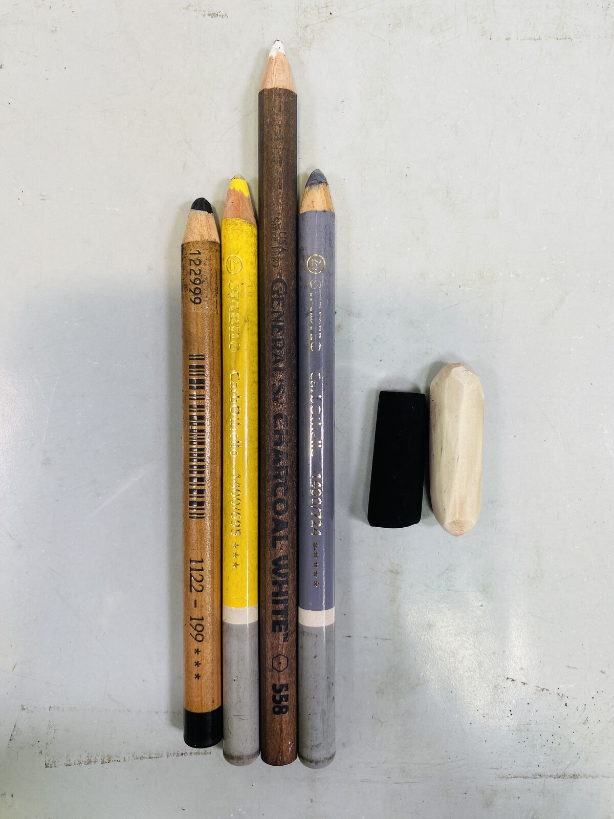 - Угольный карандаш General's, вместо него можно взять любой пастельный карандаш белого цвета.