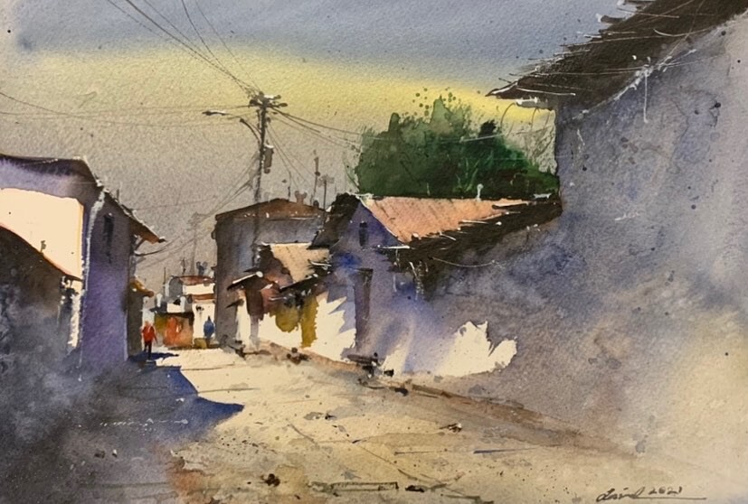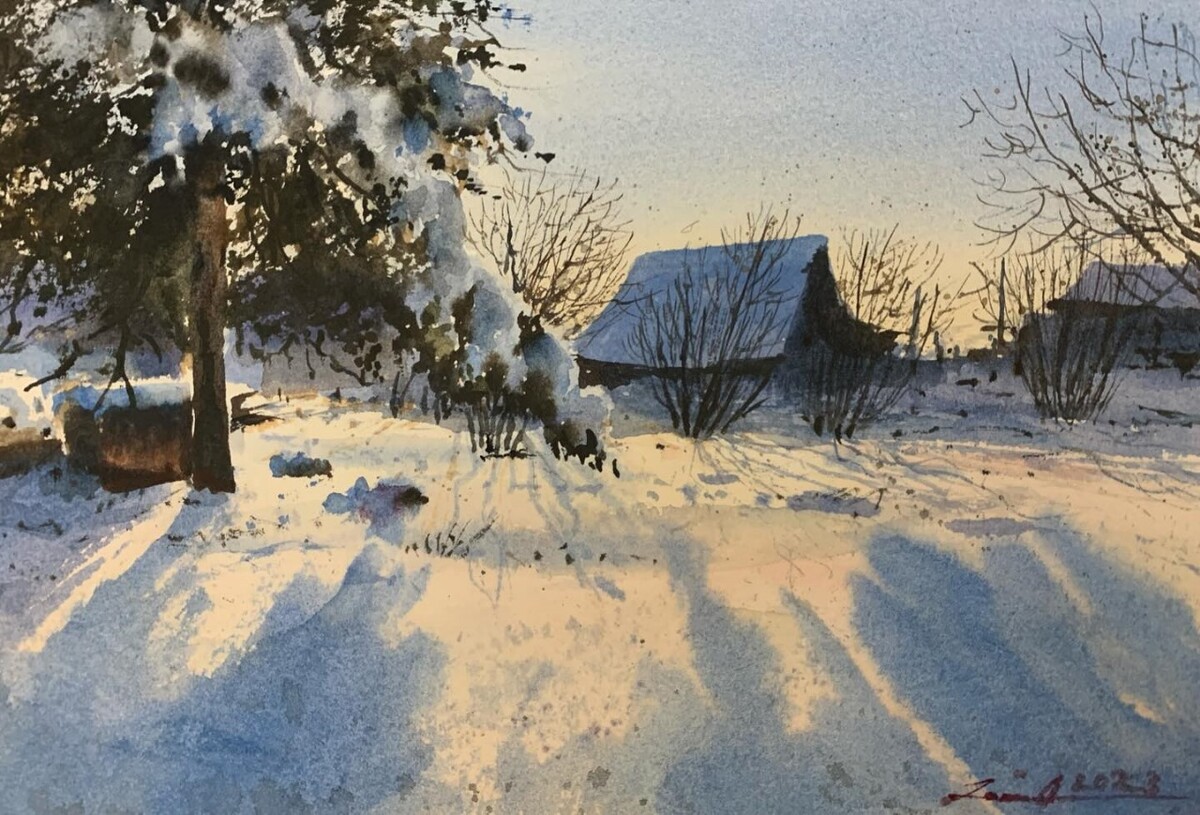 Например, дневное небо — самая яркая часть пейзажа. Мы рисуем его в самых светлых тонах.