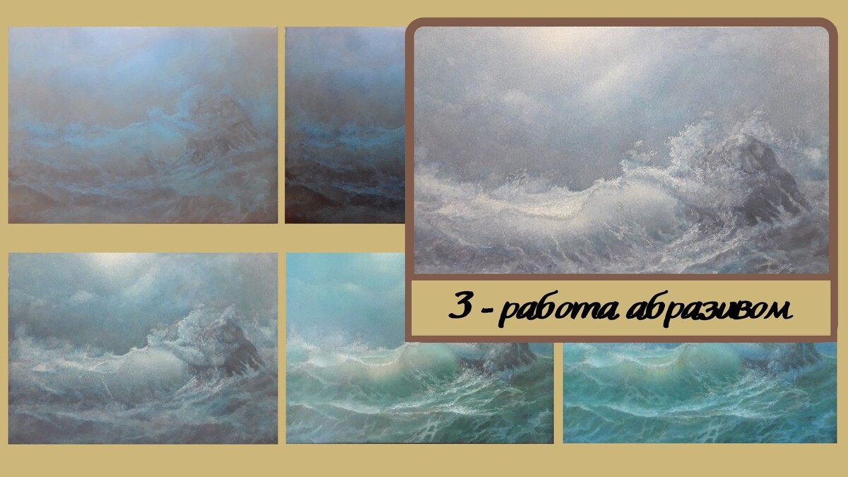 В механизме ТОП живописи все эти вопросы решены, вернее они даже не стоят. Потому что работа в корне отличается от привычной. Основным инструментом сейчас становится не кисть, а наждачная бумага. Почему?