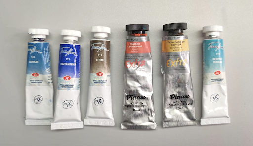 1. Я использую голубую, ультрамарин и сепию марки Белые ночи.