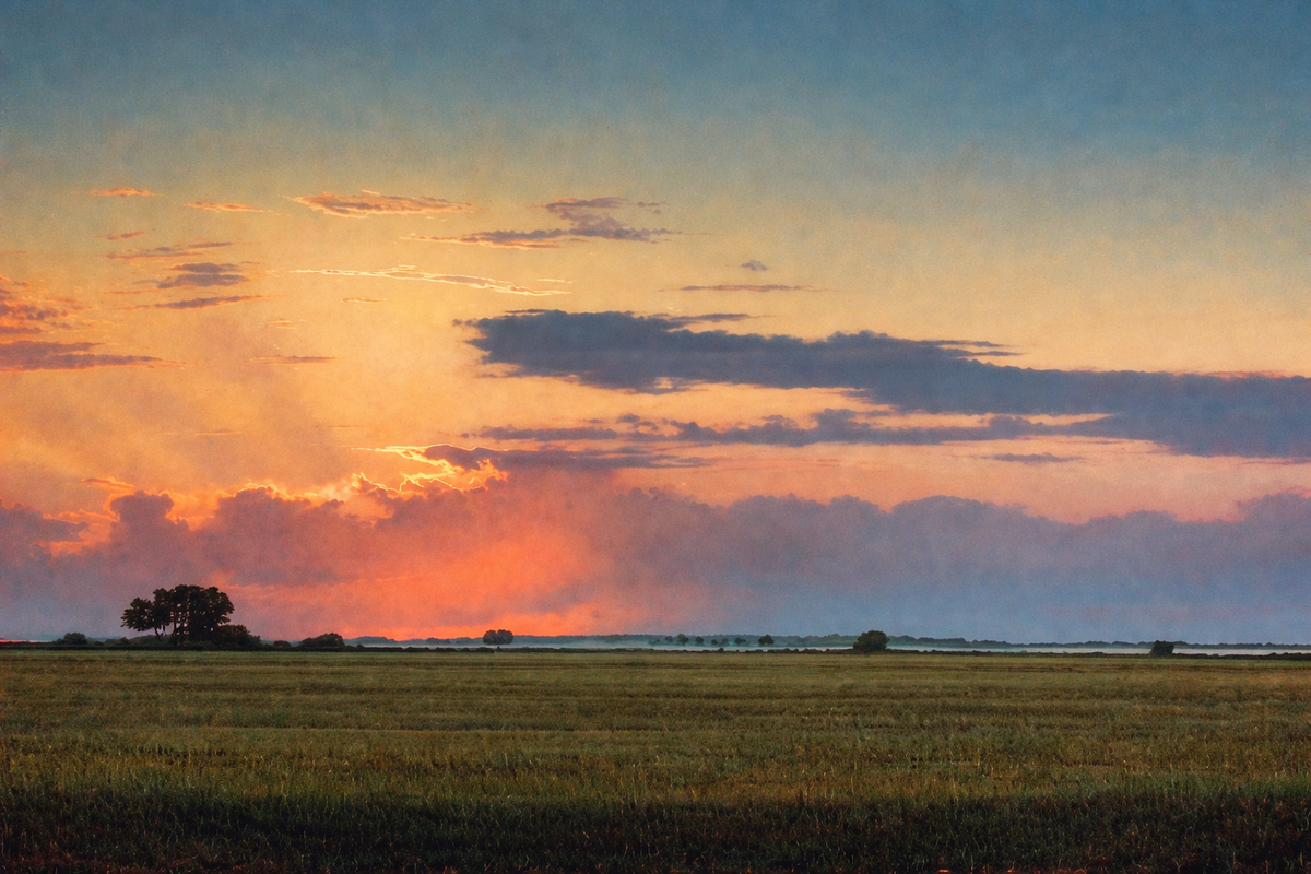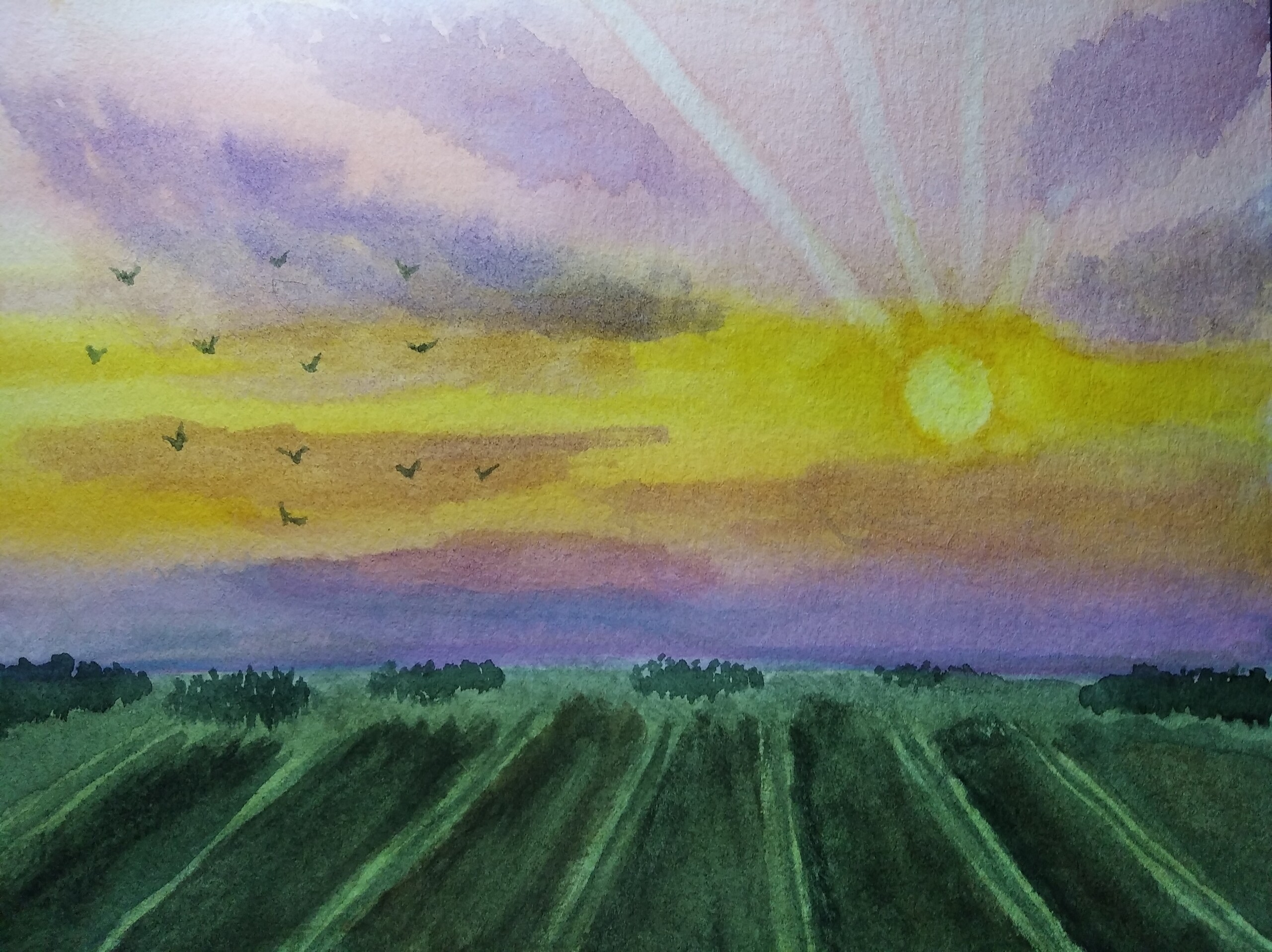 - напишем поле простыми пятнами — без лишних деталей, но с ощущением глубины;