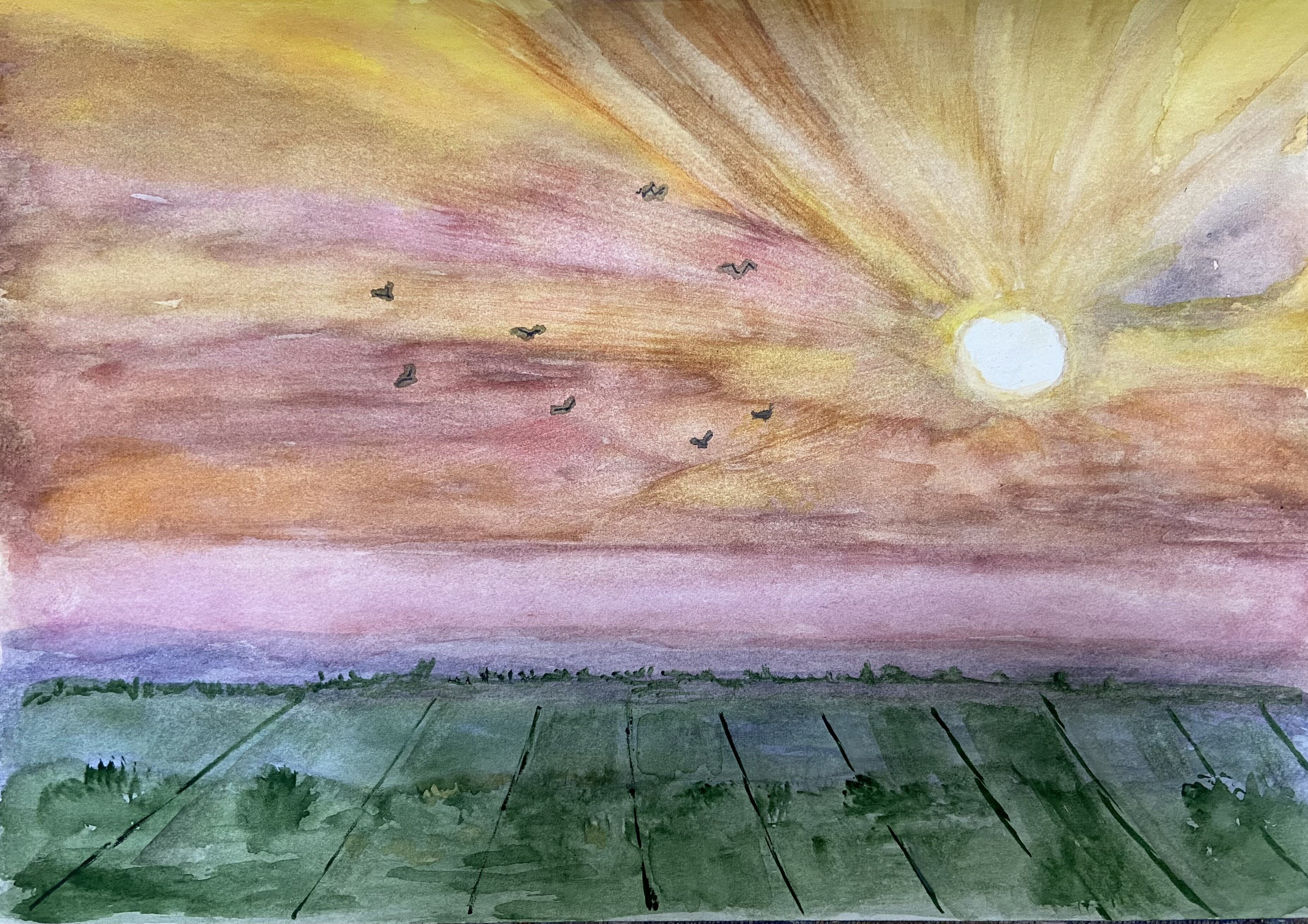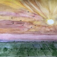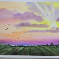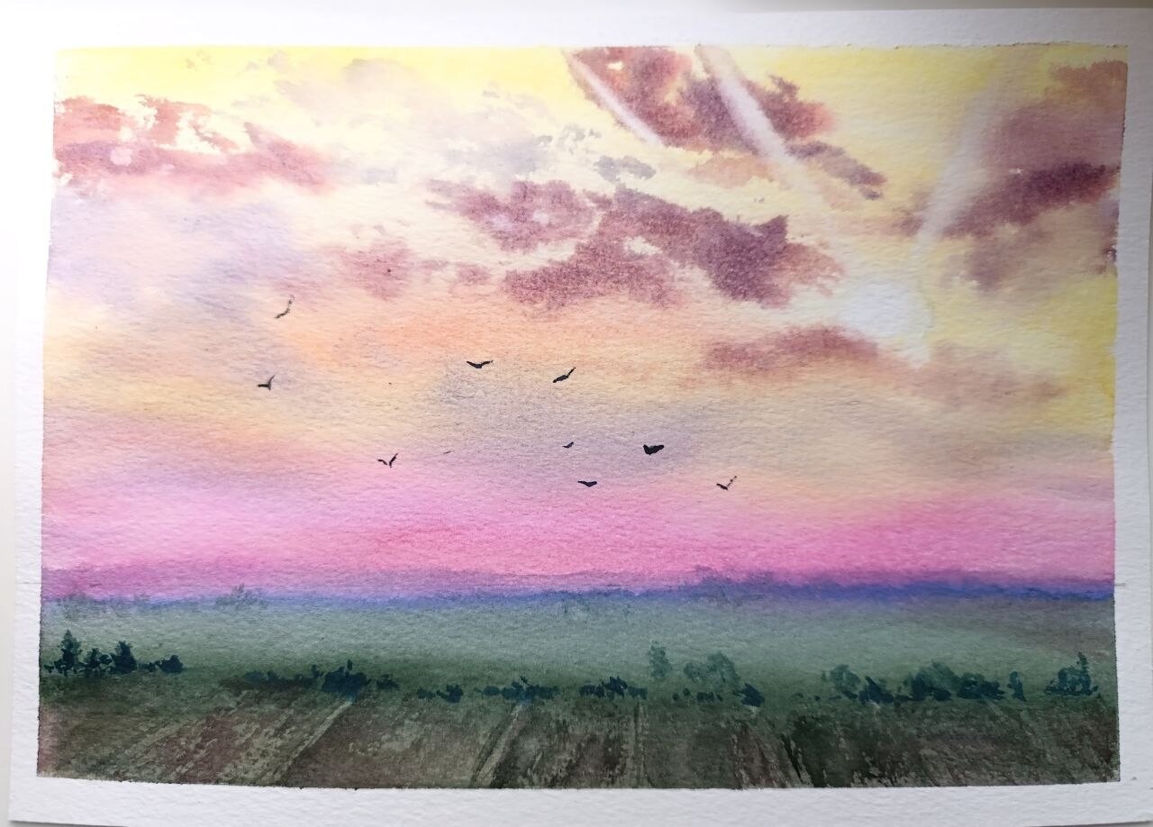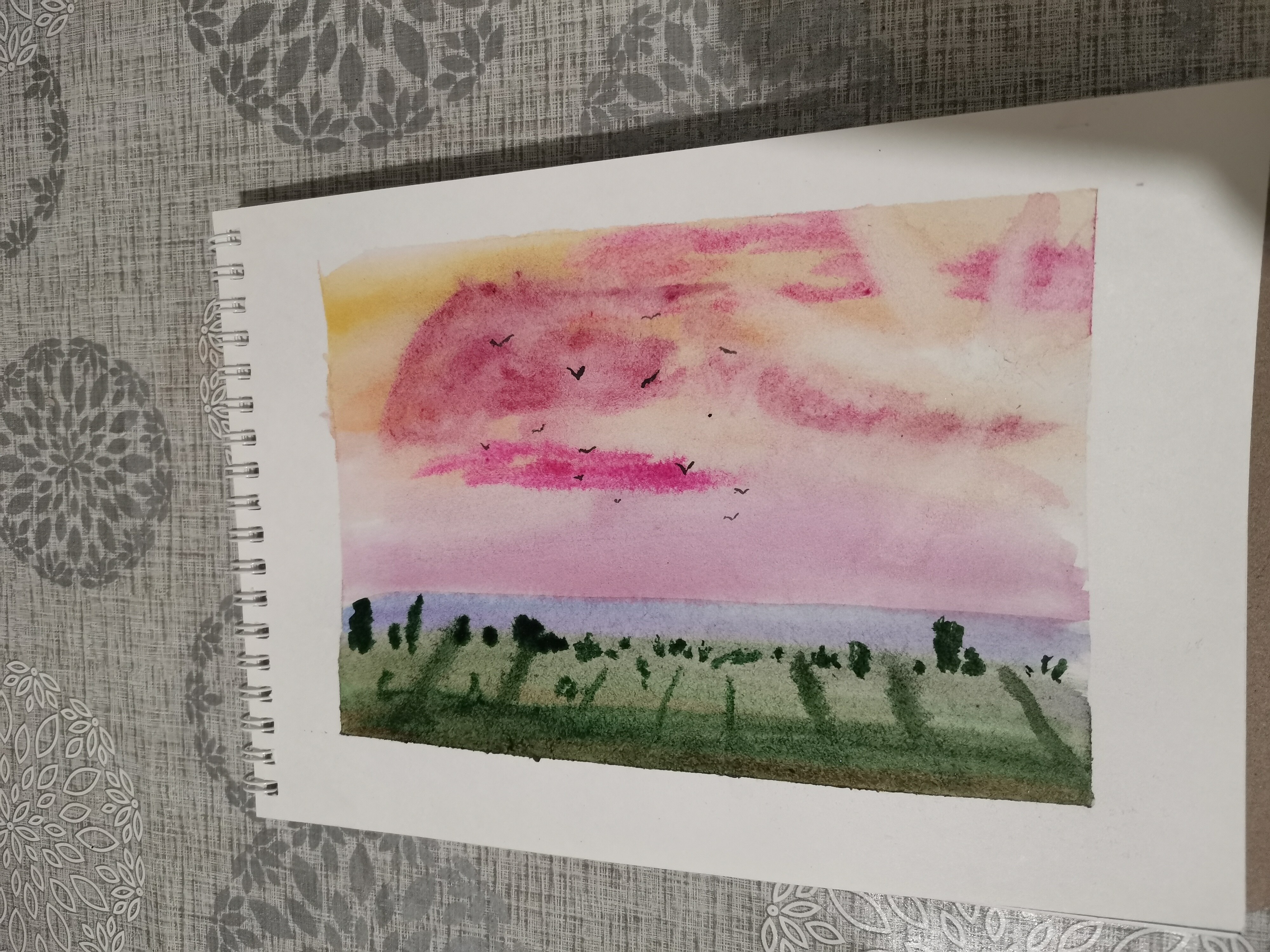 Нарисуйте закатное небо. Прикрепите фотографию получившегося результата ниже.