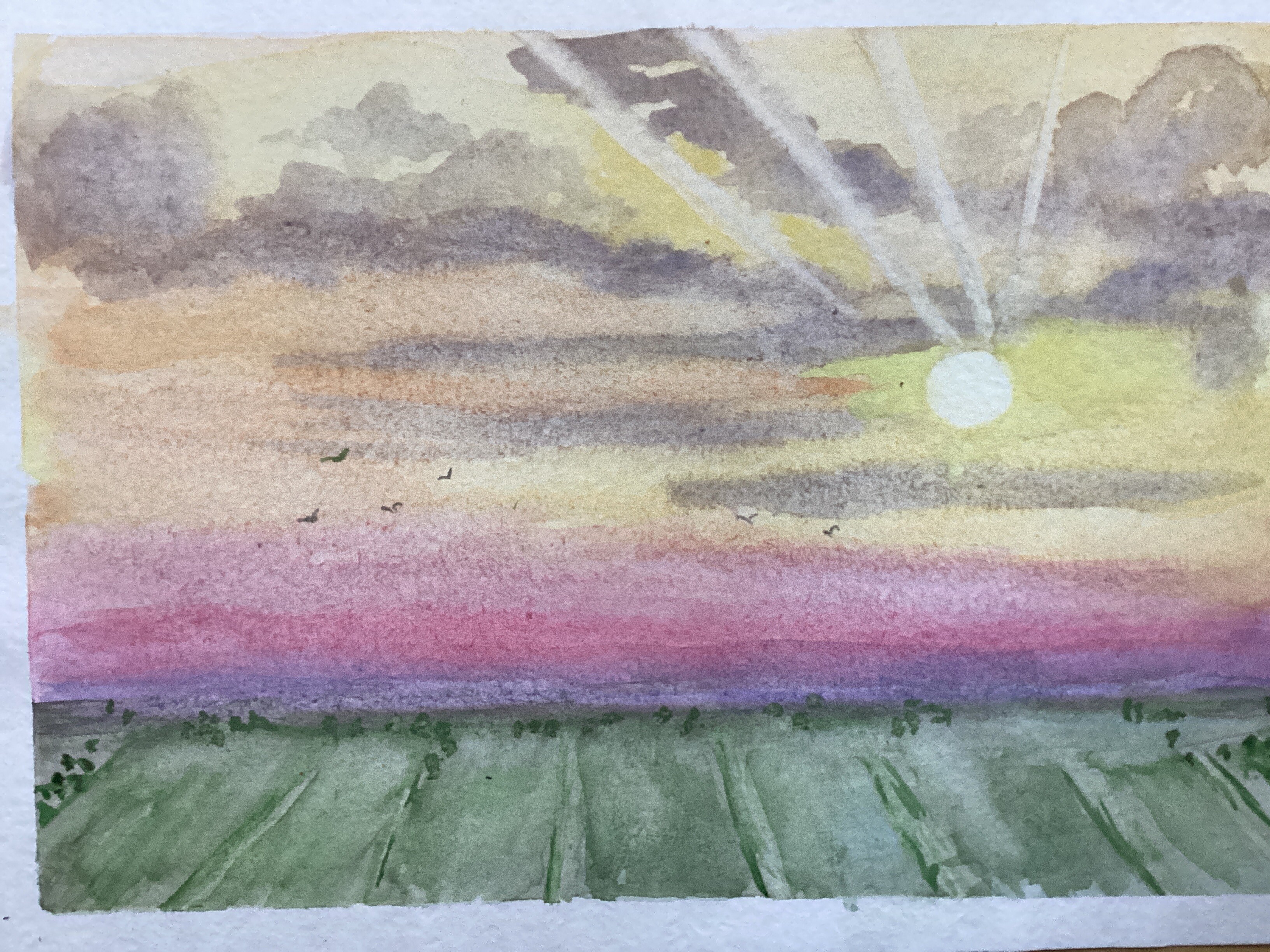 - напишем поле простыми пятнами — без лишних деталей, но с ощущением глубины;