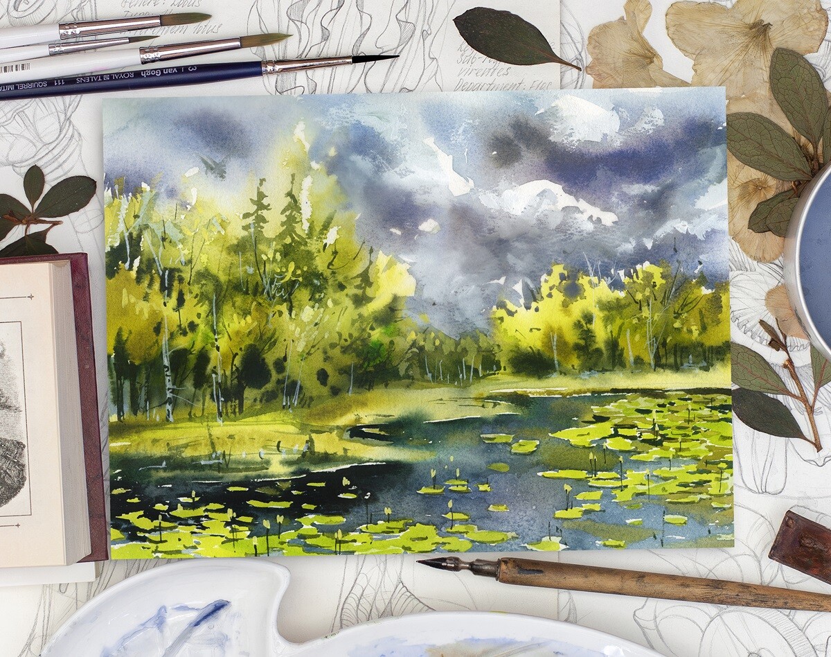 На этом уроке мы сосредоточимся на создании эмоционального, насыщенного по цвету и настроению неба. Поговорим о контрастах, работе от пятна и умении «ловить» состояние в моменте.
