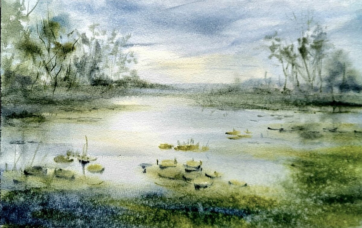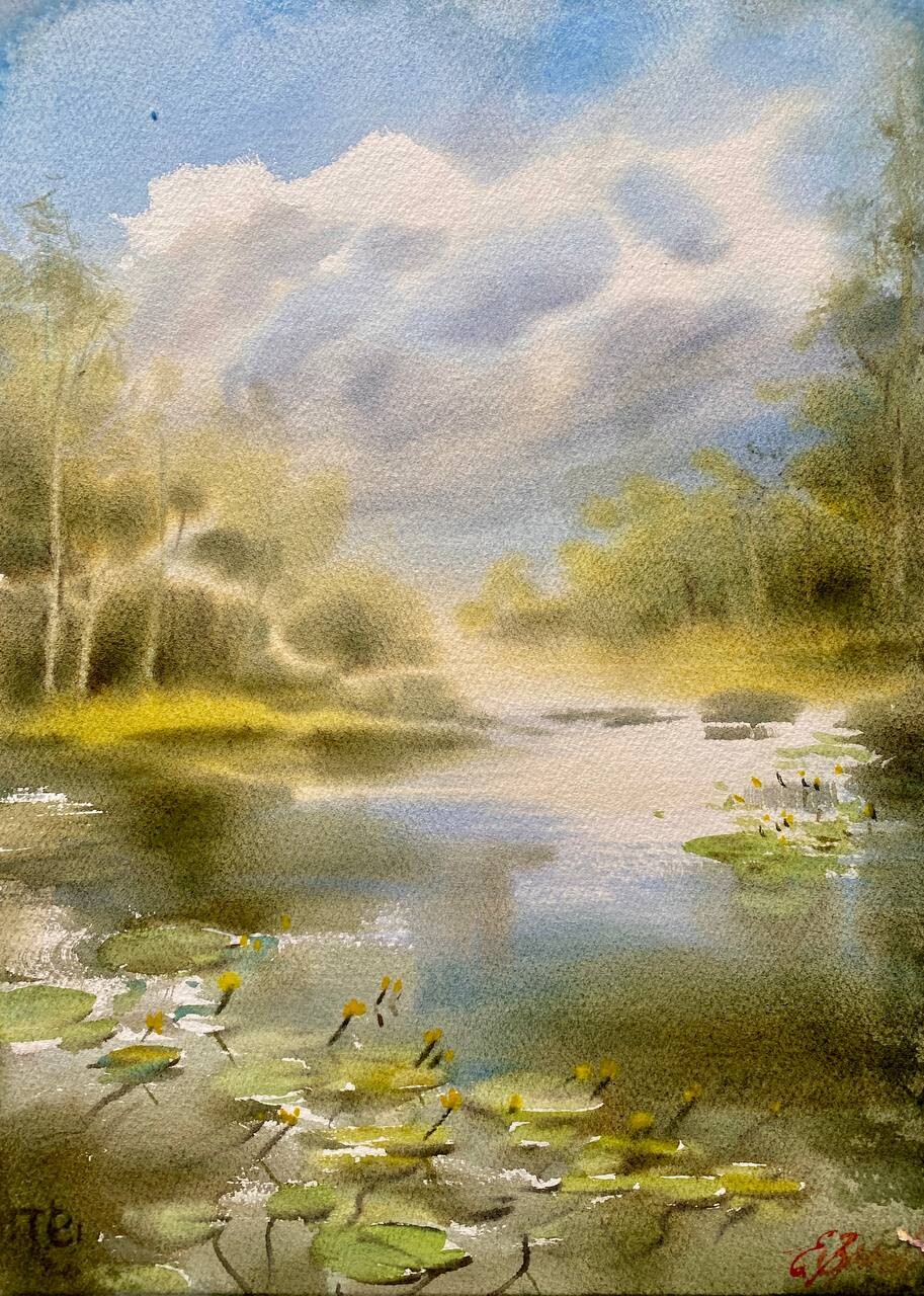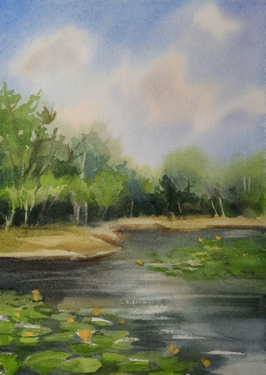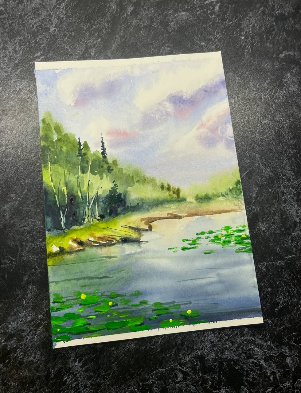 В эфире мы нарисовали лес у воды. А еще я рассказала о сложностях, с которыми можно столкнуться при участии в выставках, и о том, как их избегать.
